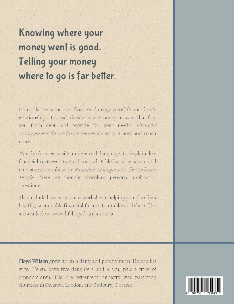Individuals and organizations unable to pay the above publisher prices may apply to receive a quantity of Financial Management for Ordinary People books for less than $20 per book. Please contact LifeHope Foundation giving a full explanation of the need and how provided resources will be used. (See Contact Us)
